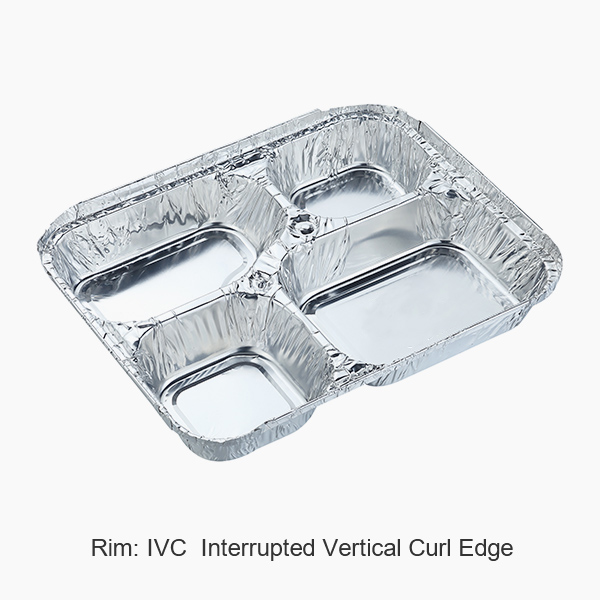4 compartment disposable aluminium foil trays IVC rim with paper board lid